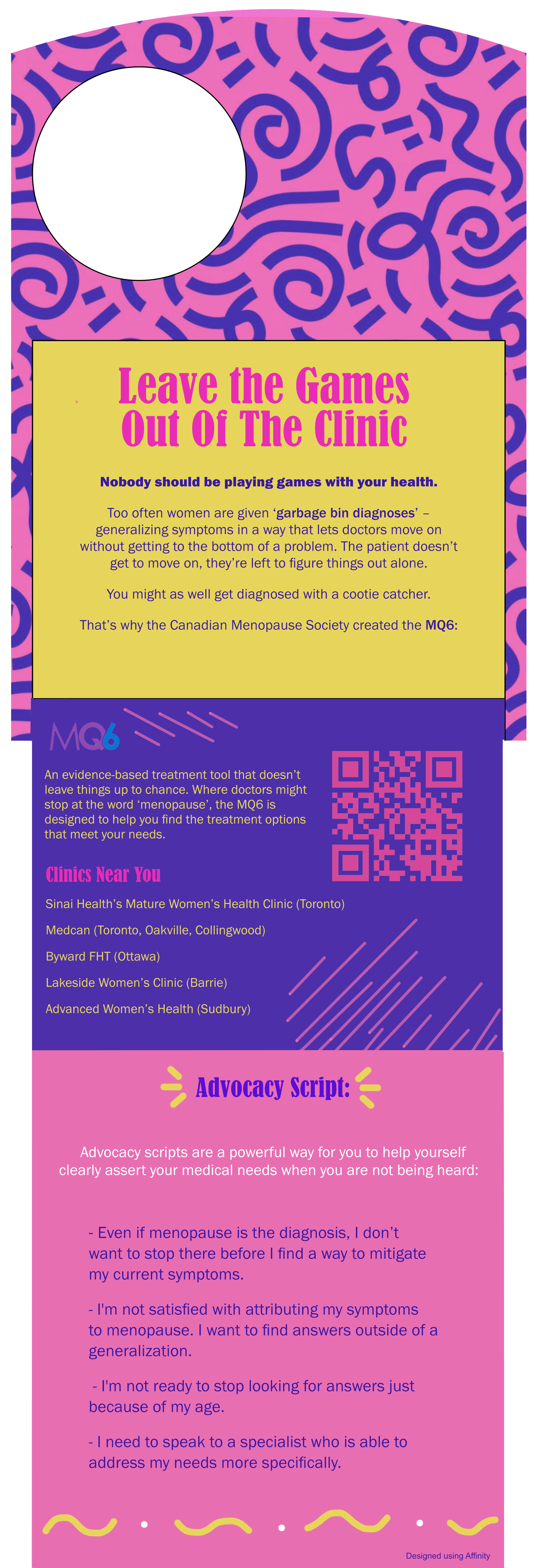 Pairing with the Canadian Menopause Society and their MQ6 diagnostic tool, we built a direct mail campaign to bring the power of self-advocacy to Ontario women.